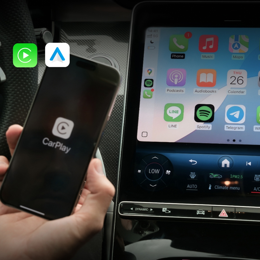 - Zastosowanie: zamiana fabrycznego przewodowego CarPlay/Android Auto na wersję bezprzewodową