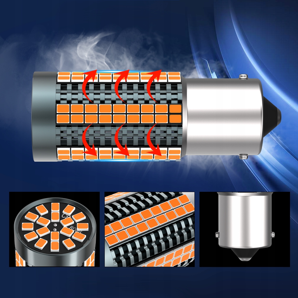Pasuje w popularne gniazdo P21W / BAU15s – zazwyczaj stosowane jako kierunkowskazy, światła obrysowe, światło sygnałowe, inne.