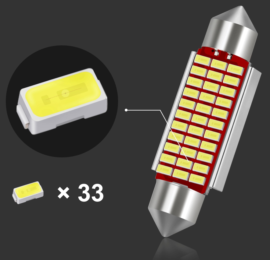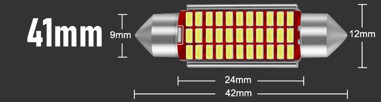Pasuje w popularne gniazdo C5W w wersji o długości 41mm – zazwyczaj stosowane jako oświetlenie tablicy rejestracyjnej, wnętrze samochodu.