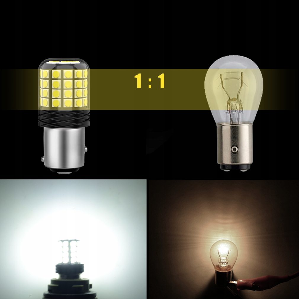 Pasuje w popularne gniazdo P21/5W / BAY15d – zazwyczaj stosowane jako światła cofania, światła pozycyjne, światła dzienne DRL, inne.