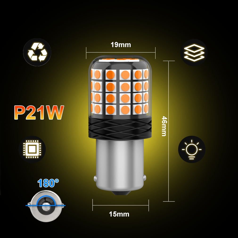 Pasuje w popularne gniazdo P21W / BA15s – zazwyczaj stosowane jako kierunkowskazy, światła obrysowe, światło sygnałowe, inne.