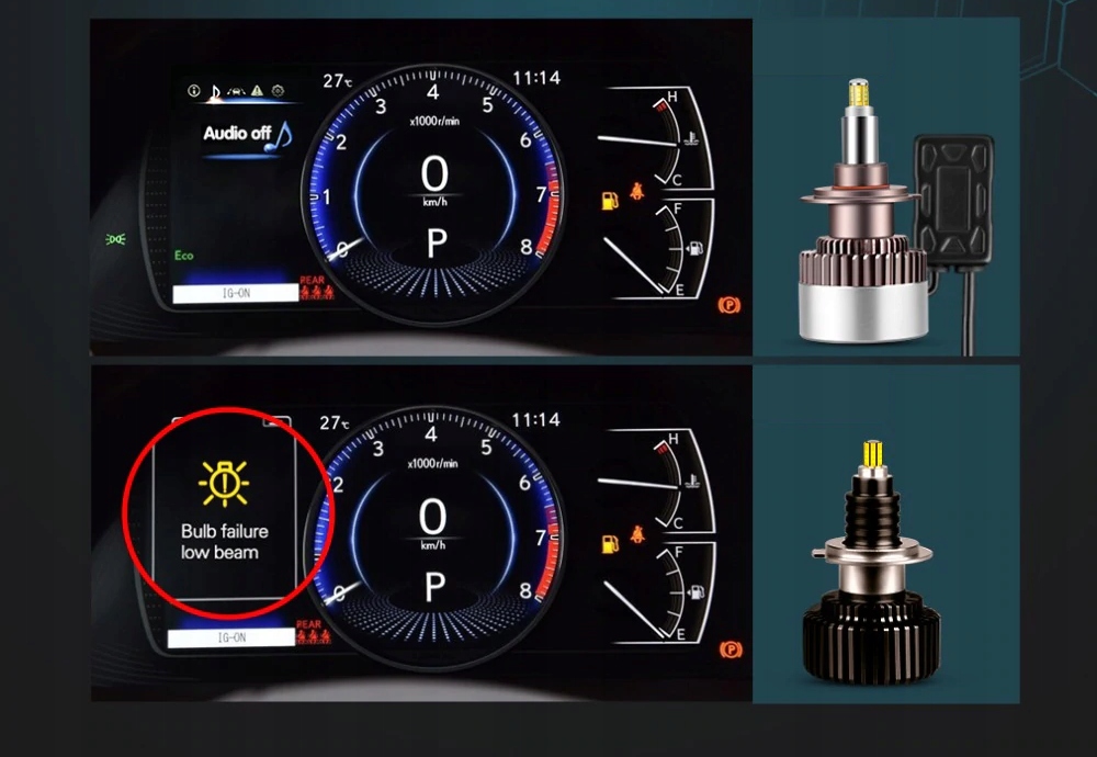 ⚙️ W niektórych pojazdach (głównie Audi, BMW, Mercedes, Volvo, Lexus, wybrane modele VW) niższy pobór mocy diod LED może powodować wyświetlanie błędu spalonej żarówki. Jest to zjawisko normalne i w pełni wytłumaczalne technologicznie.