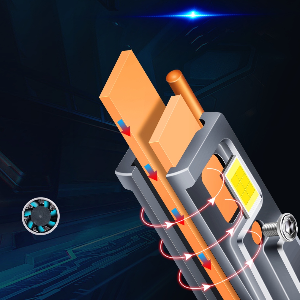 Jak chłodzimy taką moc? Sercem Xstorm® LED P6Y jest miedziany rdzeń oparty o technologię Heat Pipe, zintegrowany z systemem Xstorm® CoolingTube. Ta "rurka" ekspresowo transportuje ciepło z diod na zewnętrzny, aluminiowy radiator. Całość wspiera cichy wentylator (12 000 obr./min), gwarantując 100% stabilności mocy.