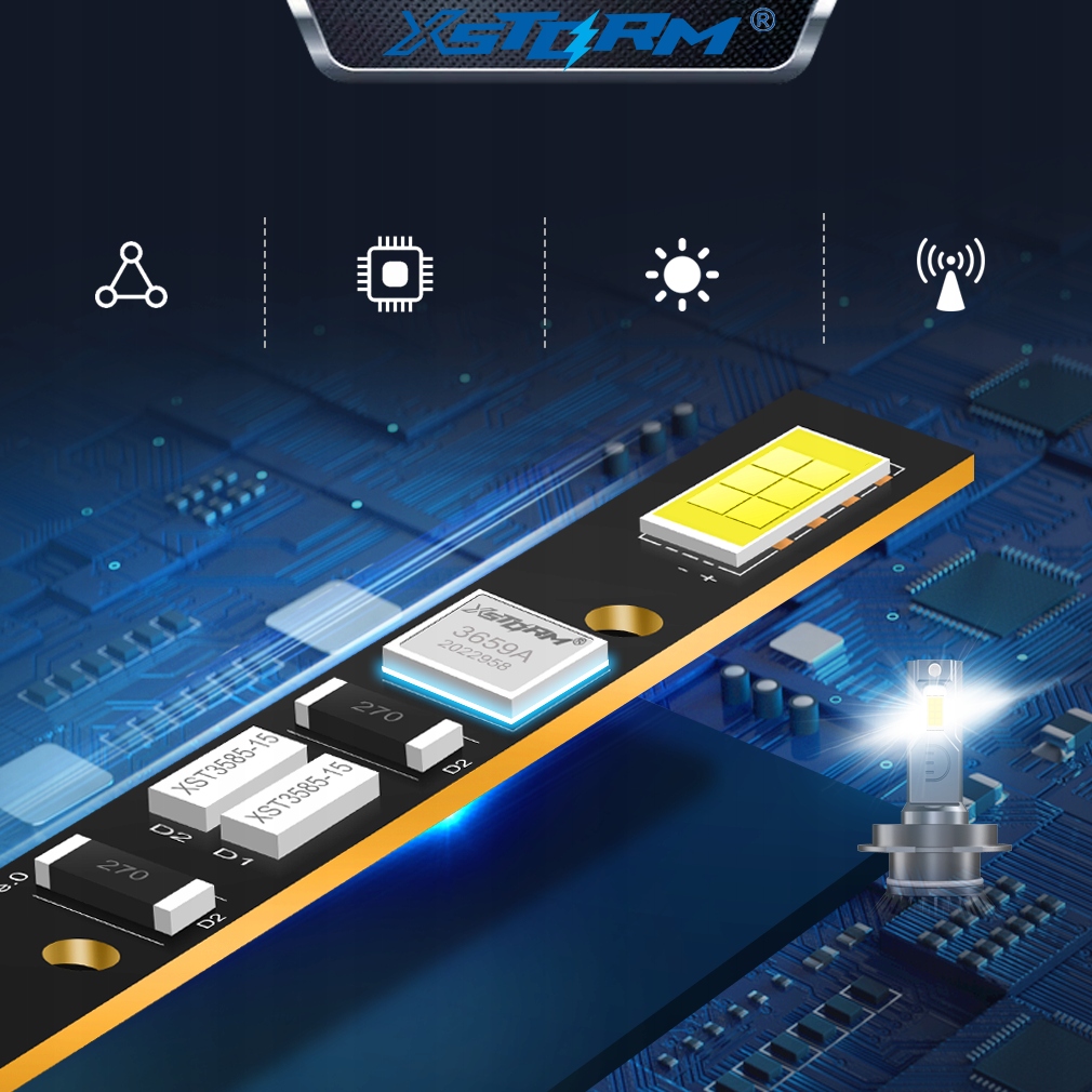 Model Xstorm® LED P6Y HB3/4 to demonstracja siły inżynierii. To zaawansowana technologia łączy trzy kluczowe elementy: elitarne chipy Xstorm® CSP 7035 dla maksymalnej jasności, realną moc 110W, oraz idealnie czystą barwę 6000K.